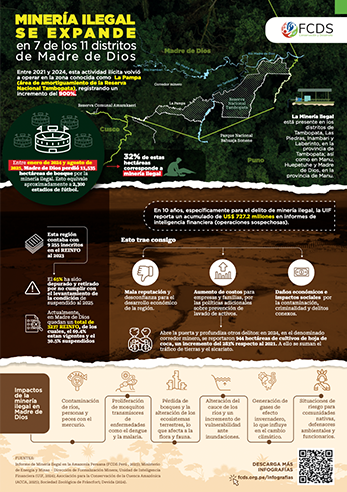 En esta infografía desarrollada por la Fundación para la Conservación y el Desarrollo Sostenible (FCDS) se presenta información clave sobre los delitos ambientales en la región Amazonas y su vinculación con el crimen organizado. El contenido permite comprender cómo estas actividades ilícitas afectan los ecosistemas, la seguridad y el bienestar de los pueblos indígenas del norte del Perú.